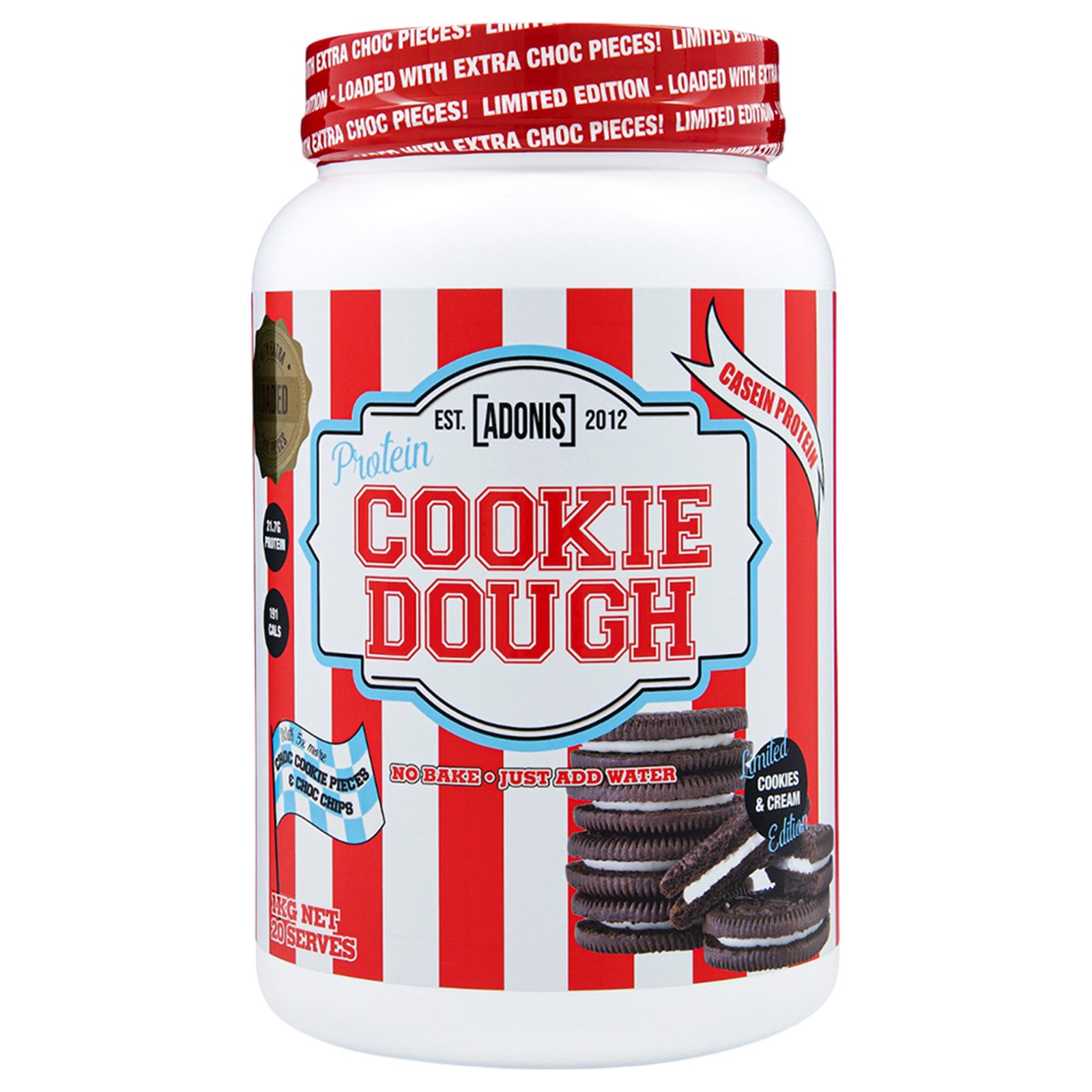 Adonis Protein Cookie Dough A World First & Your New Favourite Dessert, “Protein Cookie Dough”! It’s Only 140 Calories Per Serve, You Just Add Water, Whisk and It’s Ready to Eat! With Over 21 Grams of Casein Protein Per Serving, It Also Makes for the Perfect Snack! It Has the Same Texture as Regular Cookie Dough and Even Has Real Choc Pieces in It!