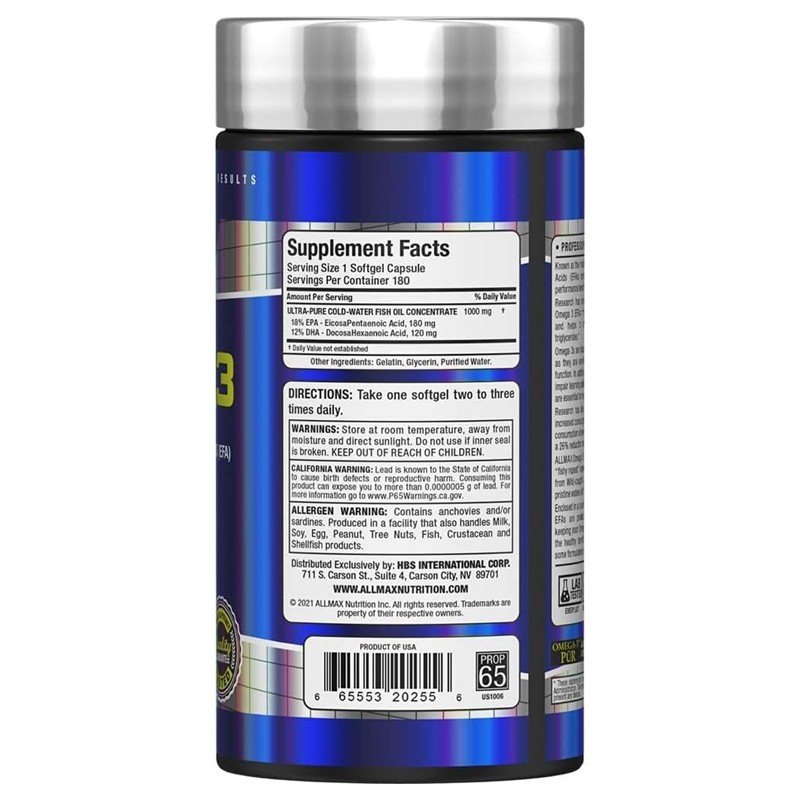 ALLMAX Omega 3 has a neutralized flavour to reduce the “fishy repeat” experience of other fish oil capsules. Made from Wild-caught Anchovies and Sardines caught in the pristine waters off the coasts of Chile and Peru.