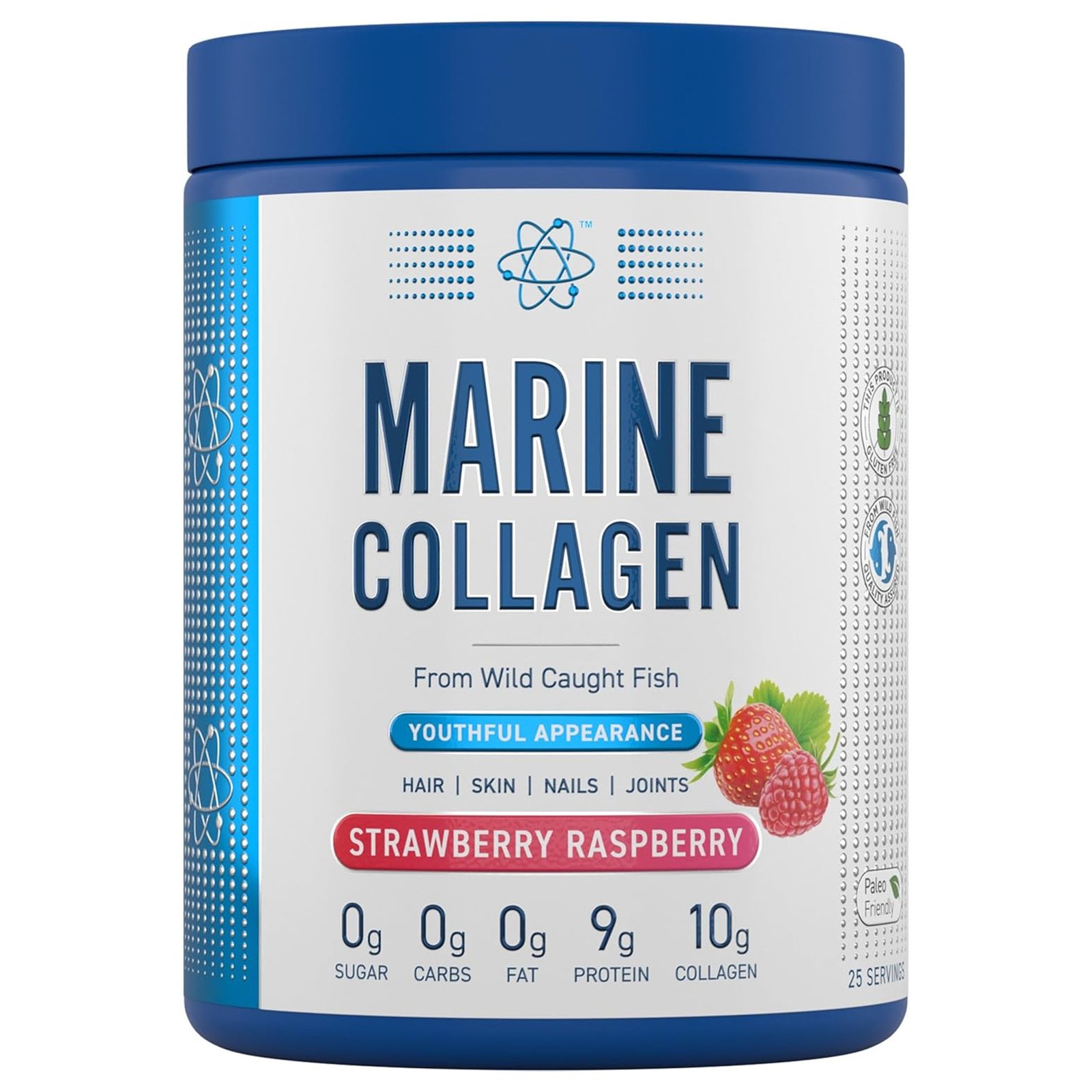 Applied Nutrition Marine Collagen “Marine Collagen” is collagen extracted from wild fish and works to compensate for what the body loses of collagen, giving you a youthful appearance with tight and refreshed skin all thanks to its unique and distinctive formula.