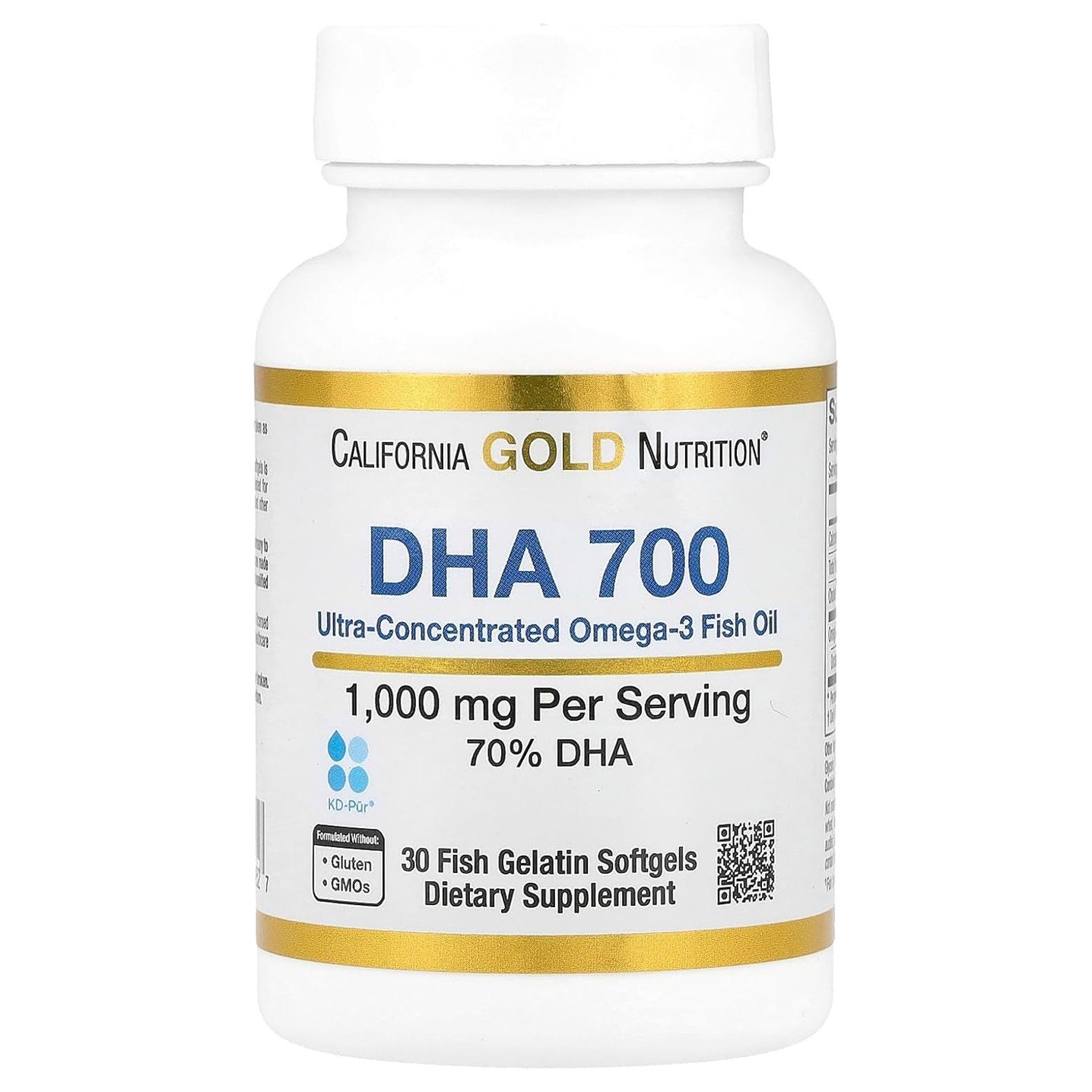 California Gold Nutrition DHA 700 Fish Oil contains a beneficial omega-3 known as DHA, which can help support healthy brain and cardiovascular function. Designed for individuals looking for an ultra-concentrated, once-daily softgel, DHA 700 features 700 mg of DHA in the preferred Triglyceride form.