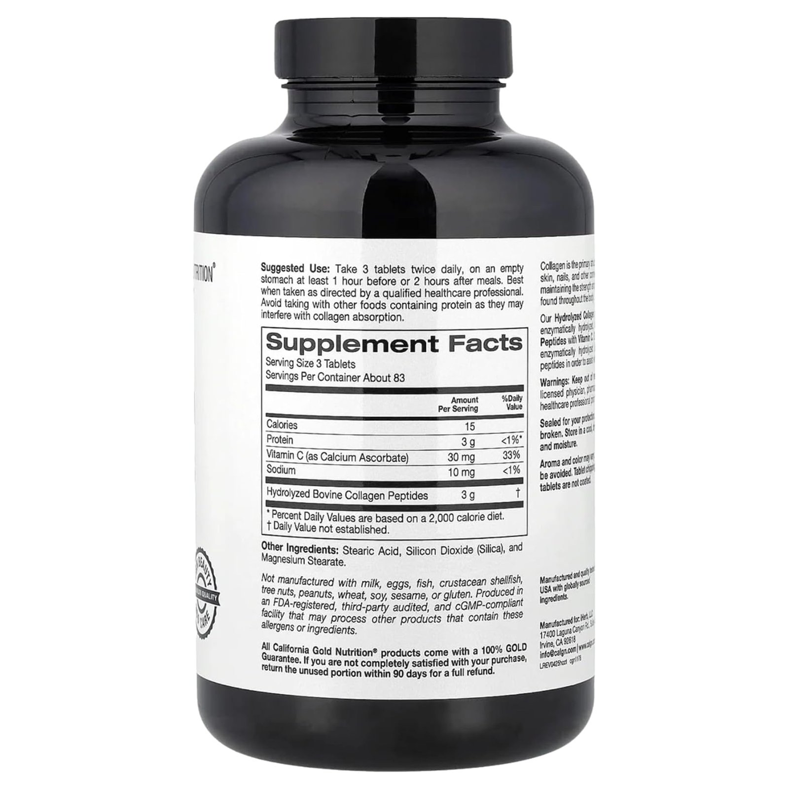 California Gold Nutrition Hydrolyzed Collagen + Vitamin C contains unique, enzymatically hydrolyzed, low molecular weight Collagen Peptides with Vitamin C. This product provides the fundamental building blocks for support of healthy hair, skin, nails, joints & bones. Our specially processed Collagen is enzymatically hydrolyzed (broken down) into amino acid peptides in order to assist with absorption/bioavailability.