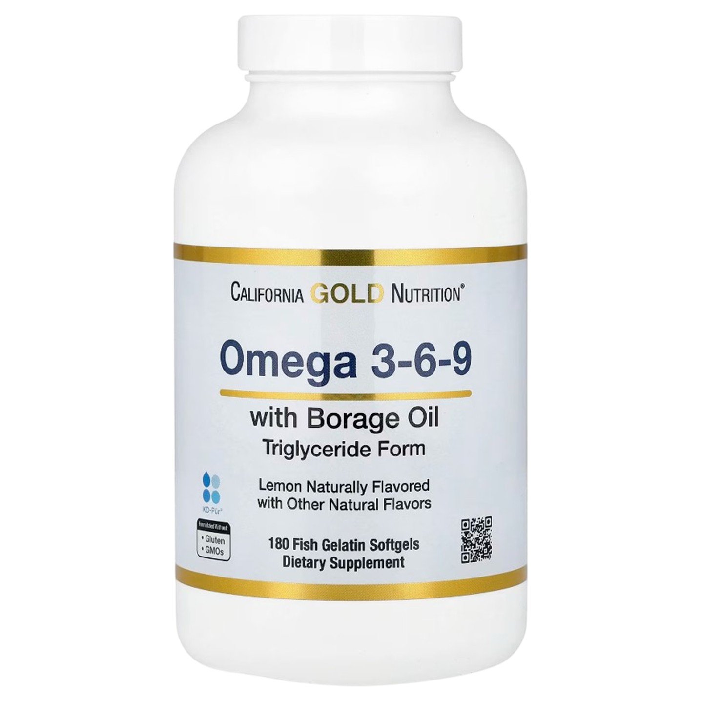 California Gold Nutrition Omega 3-6-9 is a supplement with a blend of fish oil and borage oil, both of which contain three important fatty acids. It can help you get an adequate amount of omegas in your diet, which helps support cardiovascular health.