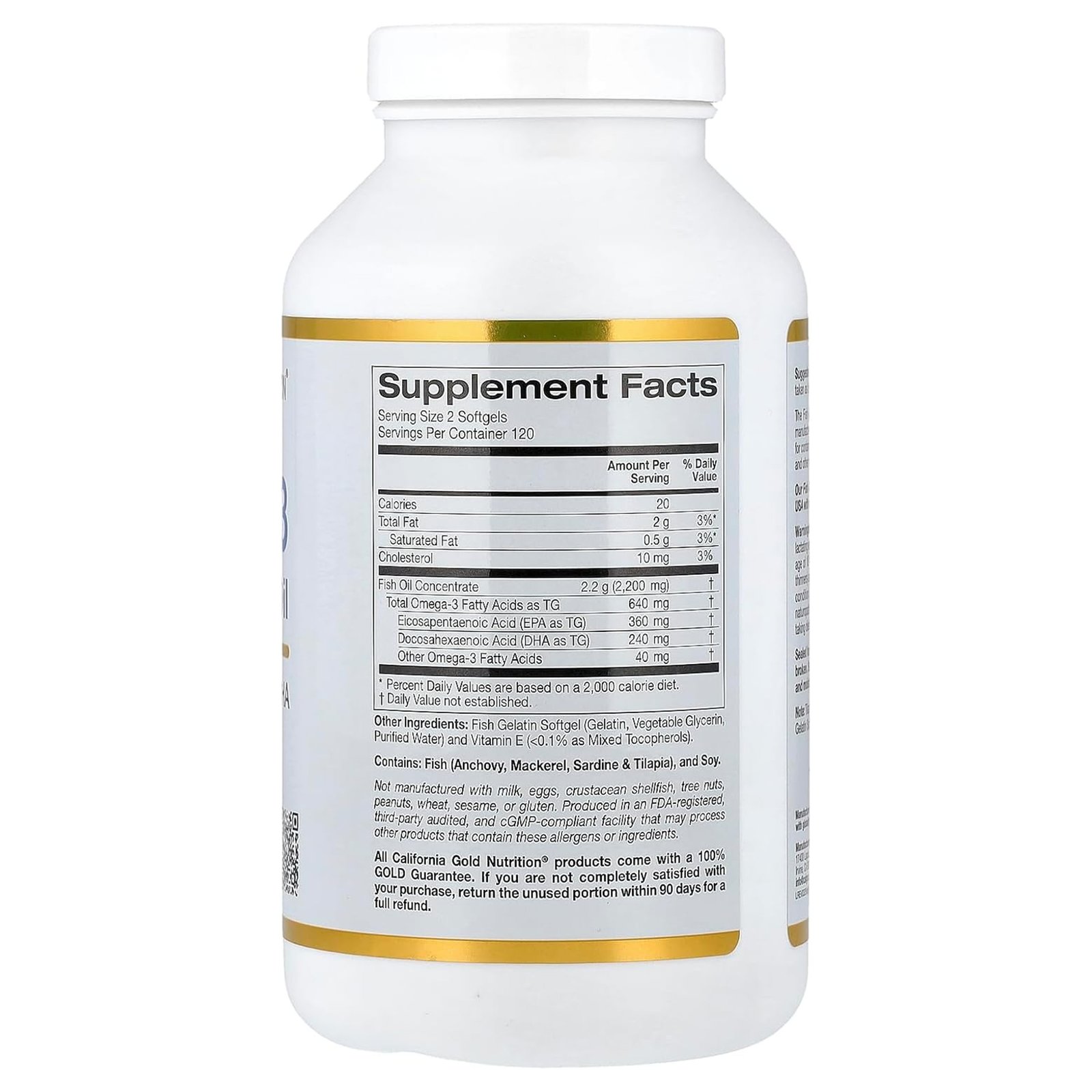 California Gold Nutrition Omega-3 Premium Fish Oil, 240 Fish Gelatin Softgels