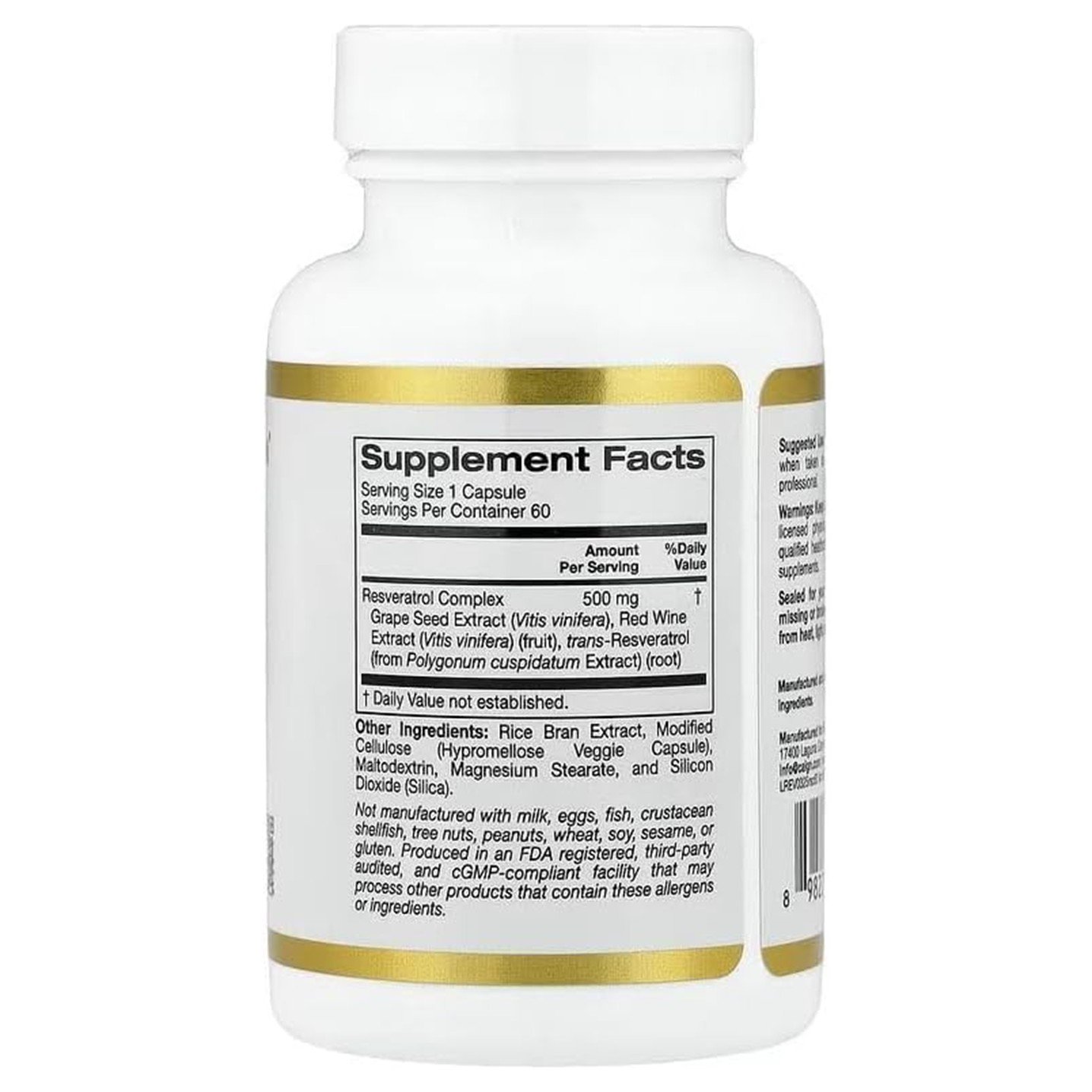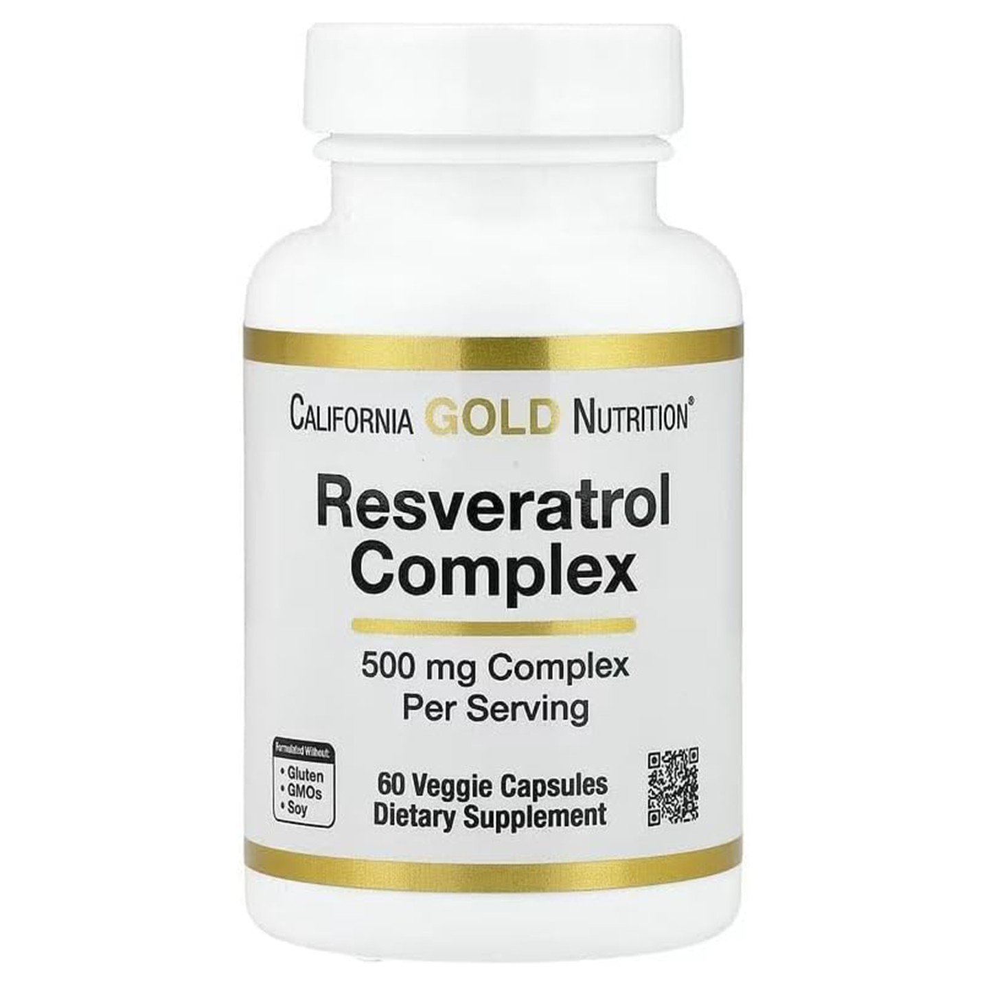 California Gold Nutrition Resveratrol Complex contains a blend of trans-Resveratrol, grape seed extract, and red wine extract to help support cardiovascular and cellular health.