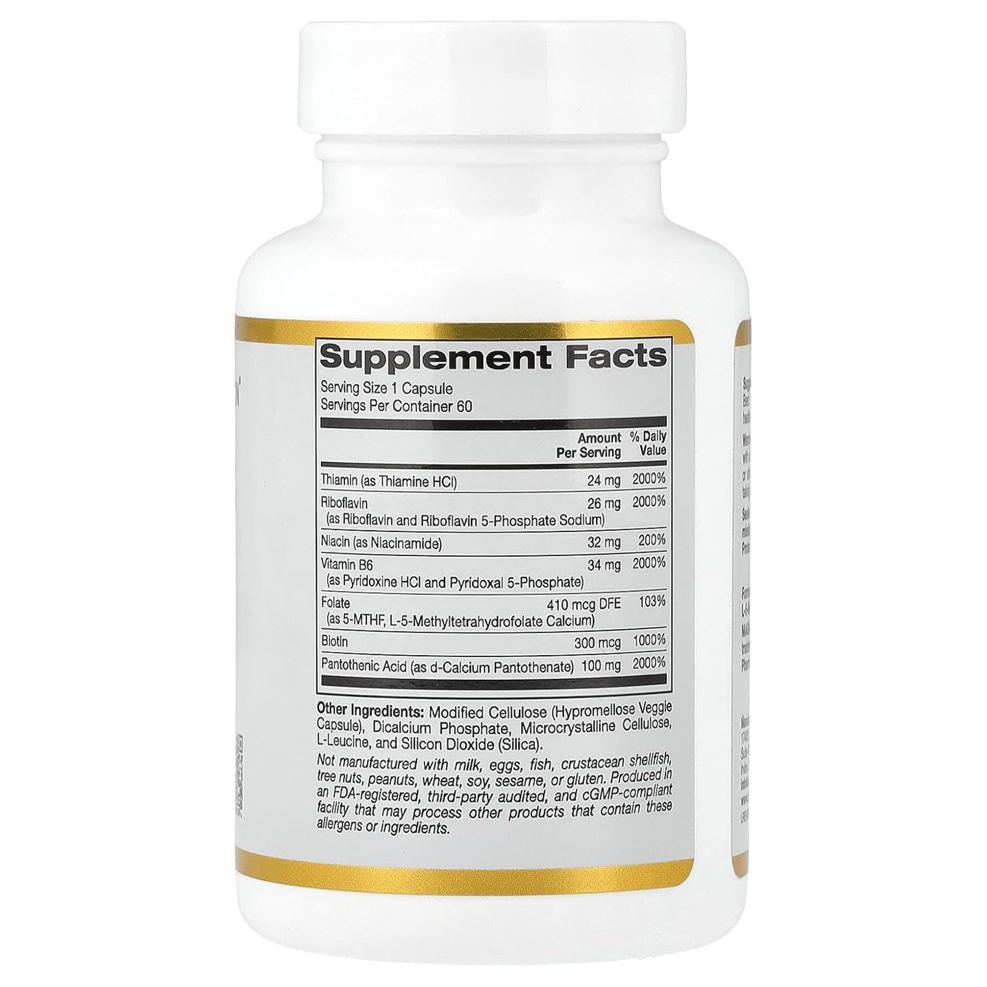 California Gold Nutrition Vitamin B Complex contains several essential B vitamins essential to maintaining health and optimum performance.