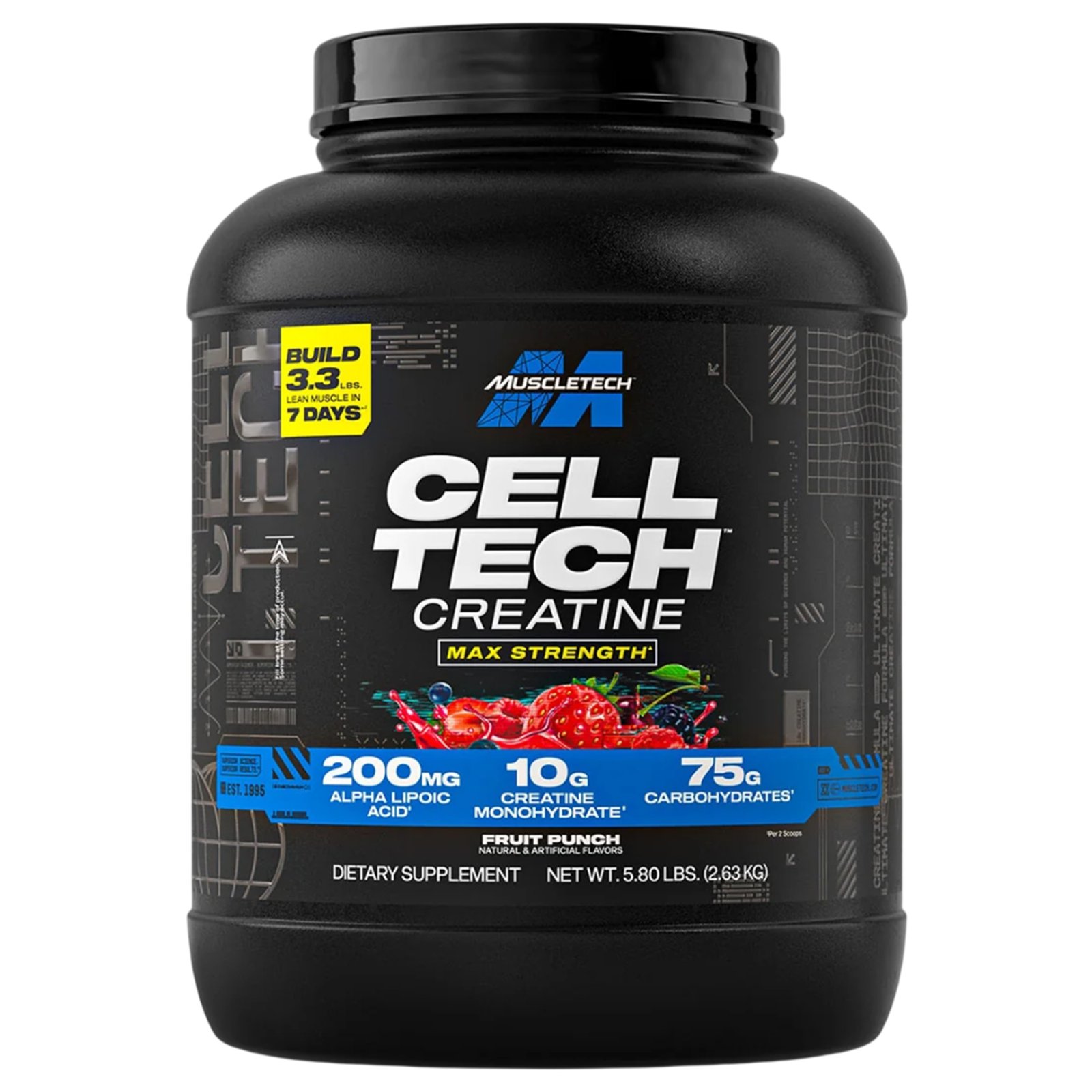 Cell-Tech delivers a researched combination of creatine monohydrate and carbohydrates that triggers an insulin spike post-workout, transporting creatine straight into muscle while rapidly replenishing glycogen stores. With increased strength and power, you will reach a new level of performance. The results speak for themselves, Cell-Tech is scientifically shown to increase strength on the bench press, leg press, and bicep curl.