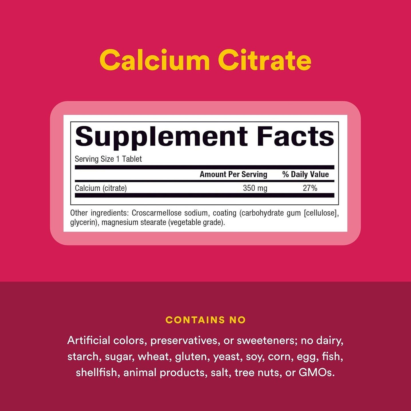 | Calcium (citrate) | 350 mg | 27% |