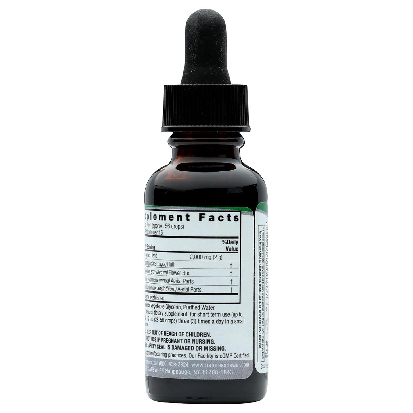 Black Walnut (Juglans Nigra) is a tree found in North America and it’s harvested in the fall. The green hull surrounding the nut is high in tannins and iodine. Wormwood (Artemisia absinthium) is a perennial shrub-like plant of the aster family. Active constituents found in wormwood include thujone, silica, tannins, flavonoids, and inulin. It also contains absinthin and anabsinthine. Nature’s Answer Black Walnut and Wormwood Complex bring you the traditional benefits of this herbal combination to promote your overall well-being.