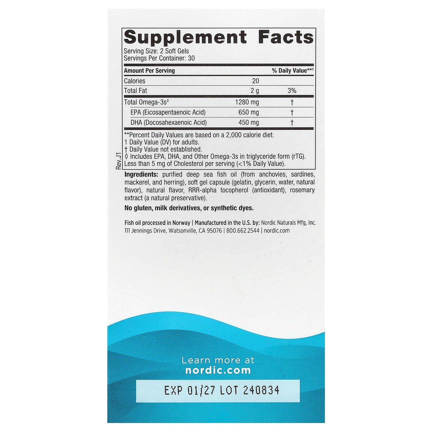 Purified deep sea fish oil (from anchovies, sardines, mackerel, and herring), soft gel capsule (gelatin, glycerin, water, natural flavor), natural flavor, RRR-alpha tocopherol (antioxidant), rosemary extract (a natural preservative).
