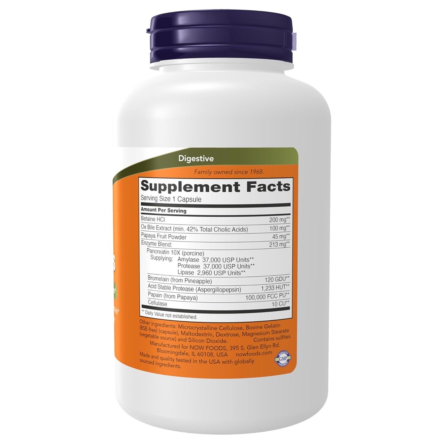 NOW Super Enzymes is a comprehensive blend of enzymes that supports healthy digestion. Formulated with Bromelain, Ox Bile, Pancreatin and Papain, Super Enzymes helps to optimize the breakdown of fats, carbohydrates and protein.