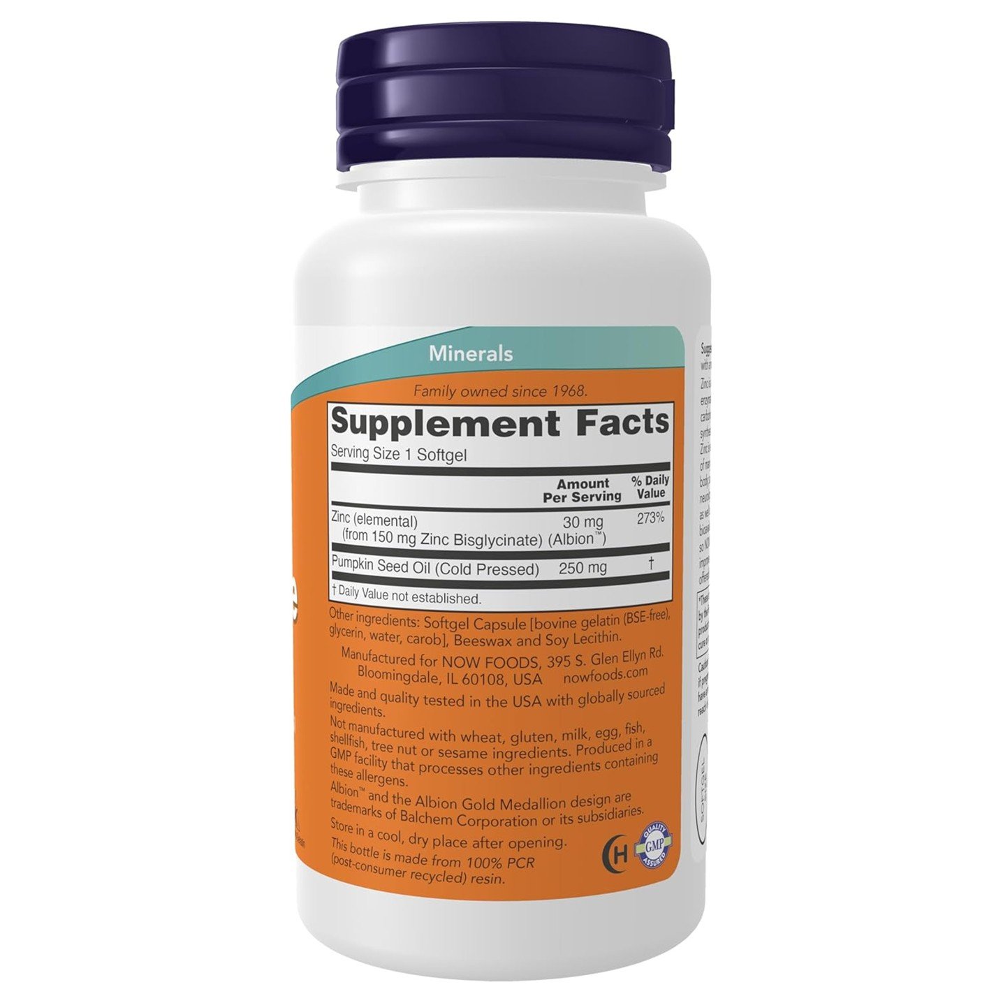 Zinc is a mineral co-factor in hundreds of enzymatic reactions related to protein and carbohydrate metabolism, RNA/DNA synthesis, and intercellular signaling. Zinc is essential to the normal function of many organs and systems within the body; supporting healthy immune, skeletal, neurological, and endocrine functions as well as a healthy prostate. Dietary bioavailability of zinc is relatively poor, so NOW Zinc Glycinate is chelated to improve absorption and bioavailability and offered in an easy-to-swallow softgel.