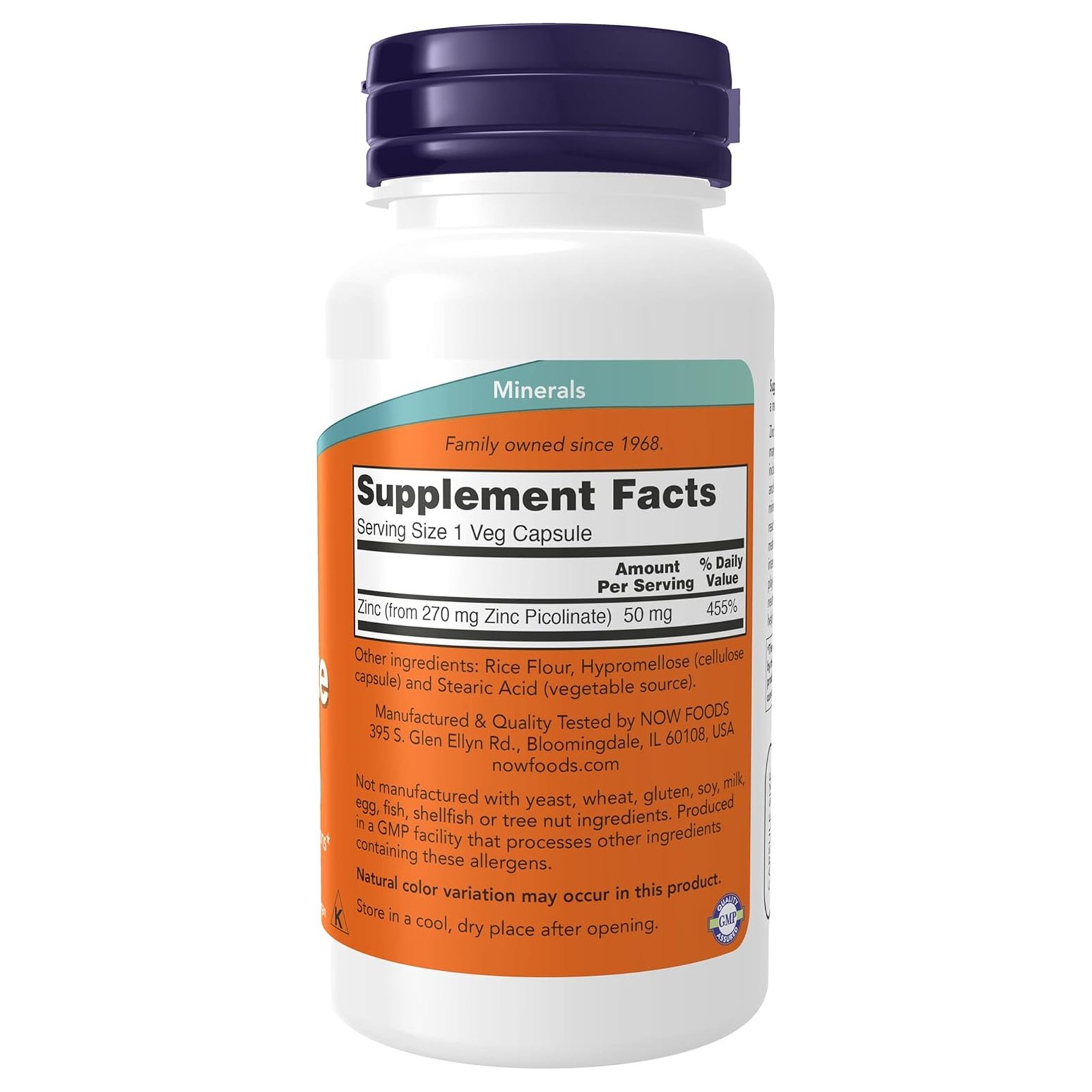 | Zinc (elemental) (from 271 mg Zinc Picolinate) | 50 mg | 455% |