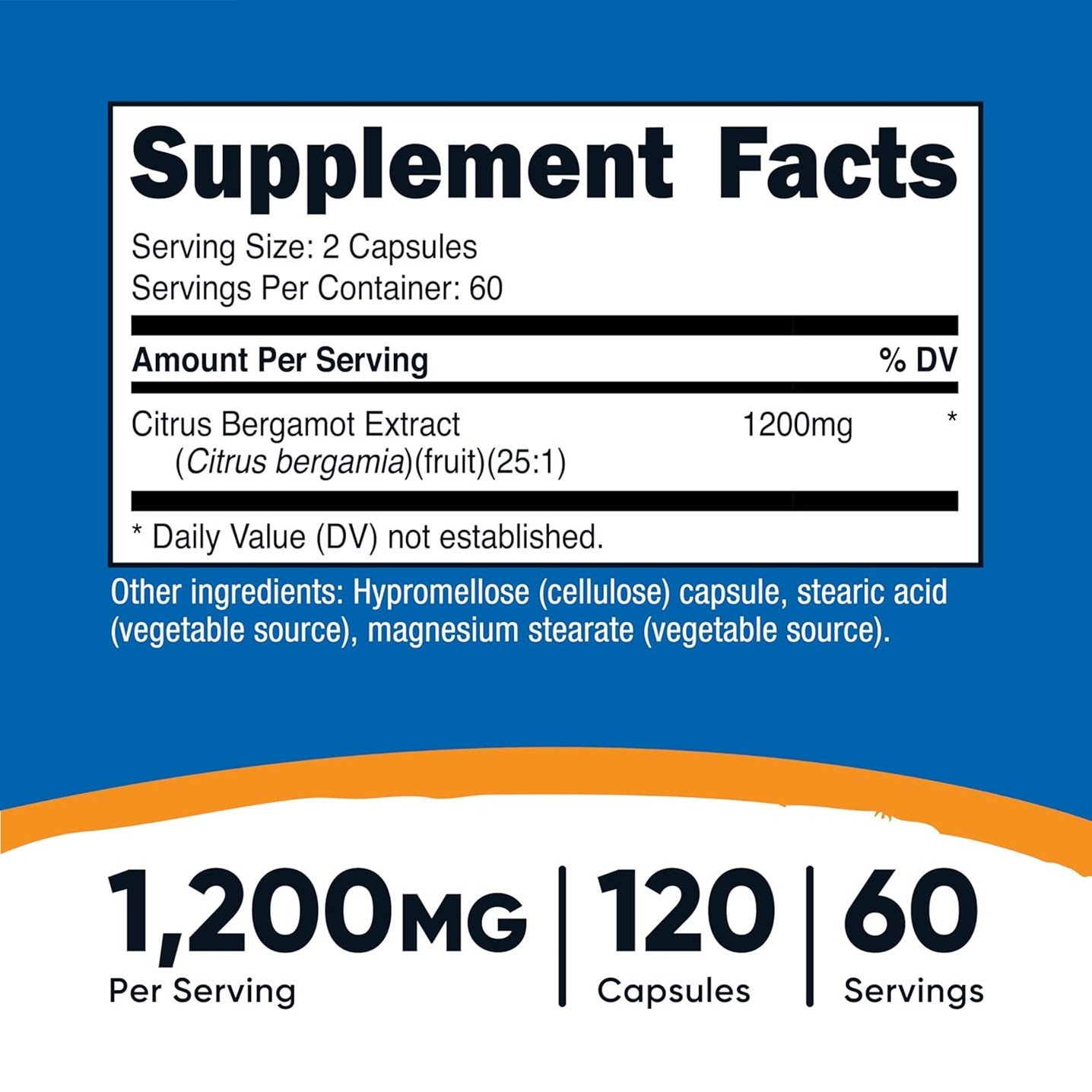 | Citrus Bergamot Extract (Citrus bergamia)(fruit)(25:1) | 1,200 mg | * |