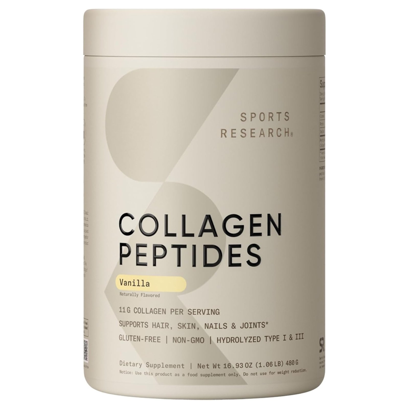 Meet your new morning ritual! Sports Research Collagen Peptides is hydrolyzed so it combines into your favorite beverage and is more readily absorbed. Collagen is the most abundant protein in the human body, but did you know our bodies produce less and less as we age? This results in everything from wrinkles to joint pain and so much more. Having enough collagen ensures optimal function of everything from skin and nails to joint and bone health. With 11 g of Type I & III collagen peptides per scoop and 18 amino acids— Sports Research Hydrolyzed Collagen Peptides is the perfect workout recovery support so you can enjoy your Sport of Life longer and look your best doing it.