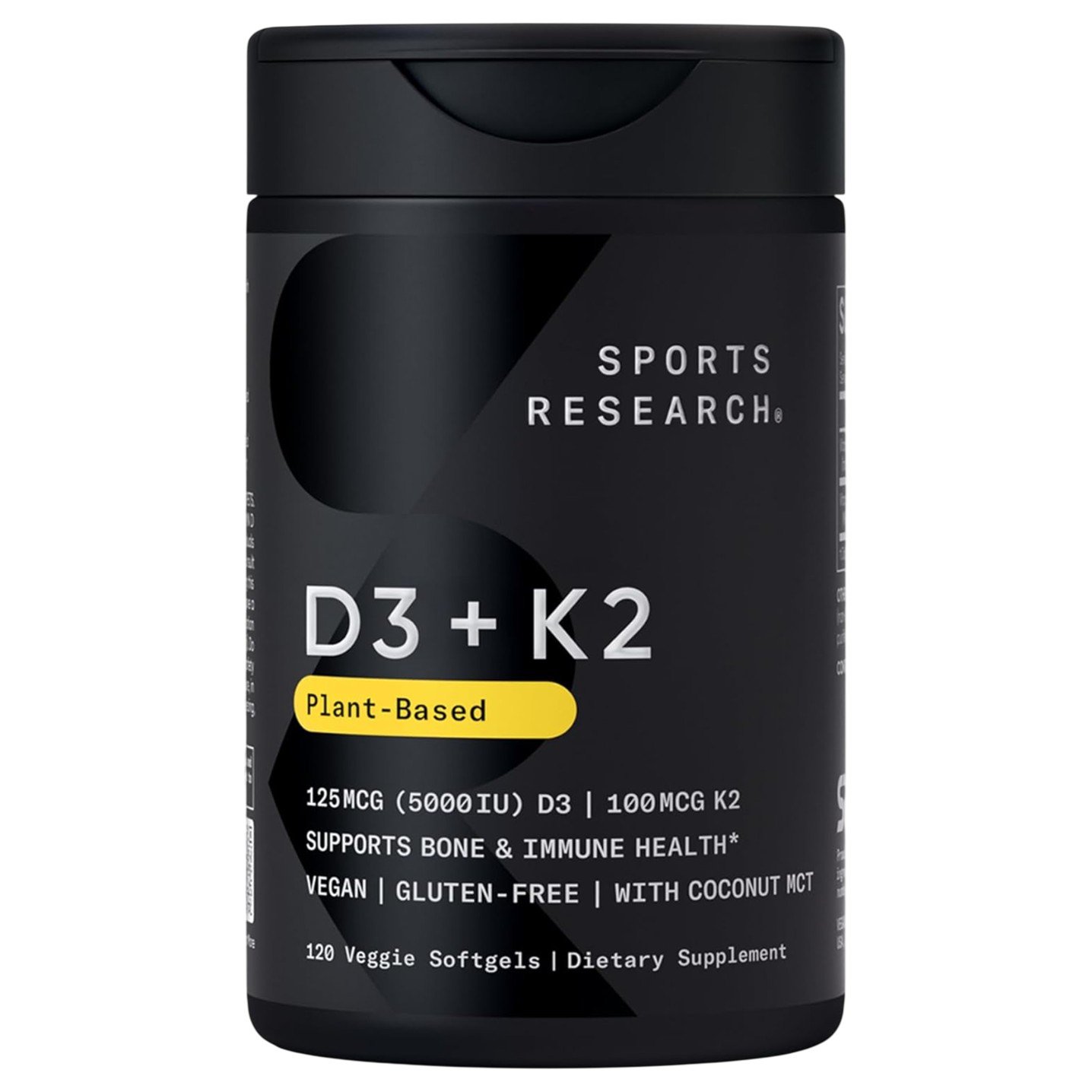 Strengthen your bones and immune system with the one and only Sports Research Vitamin D3 + K2. This vegan-friendly formula combines VegaDELight Vegan D3 from lichens, K2 from chickpeas, and coconut MCT oil in a Vegan Certified PlantGel Capsule to supplement your daily intake of D & K essential micronutrients. In our mission to always deliver the highest quality products, we’ve also added turmeric powder to the outer softgel shell to protect the active ingredients inside against photo-degradation that may occur from exposure to UV light.